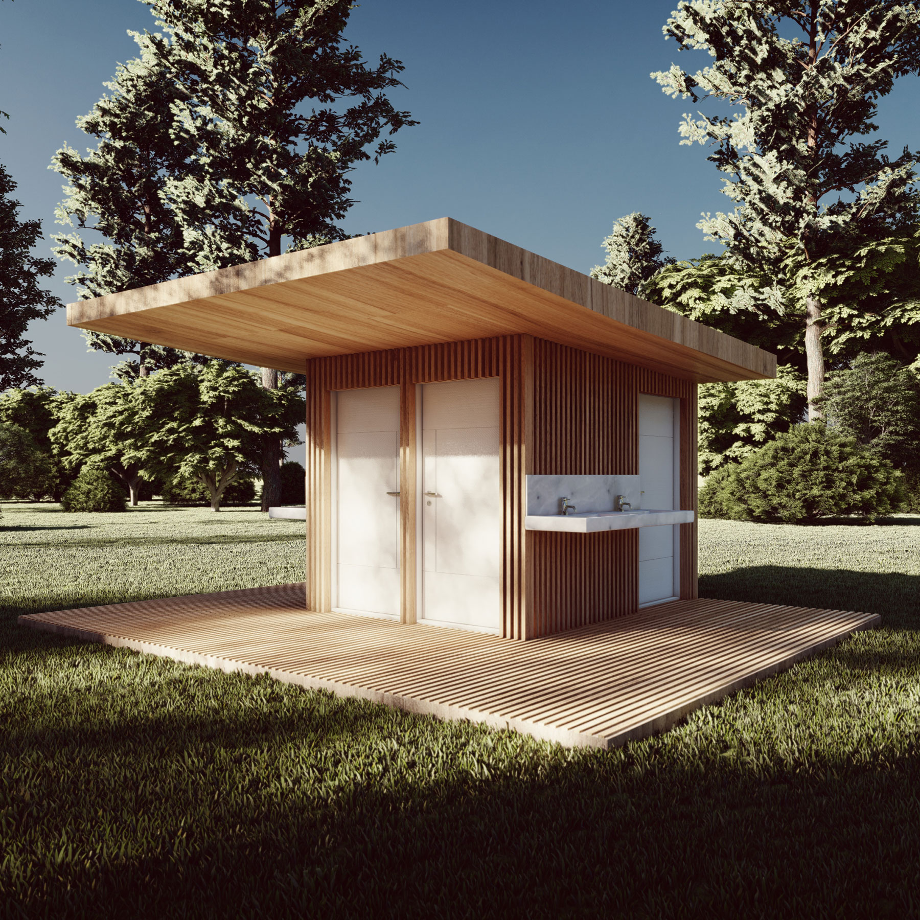 - le kit Sanitaires (deux toilettes et deux lavabos) & local technique total 6m² ; à partir de 7000€ HT
