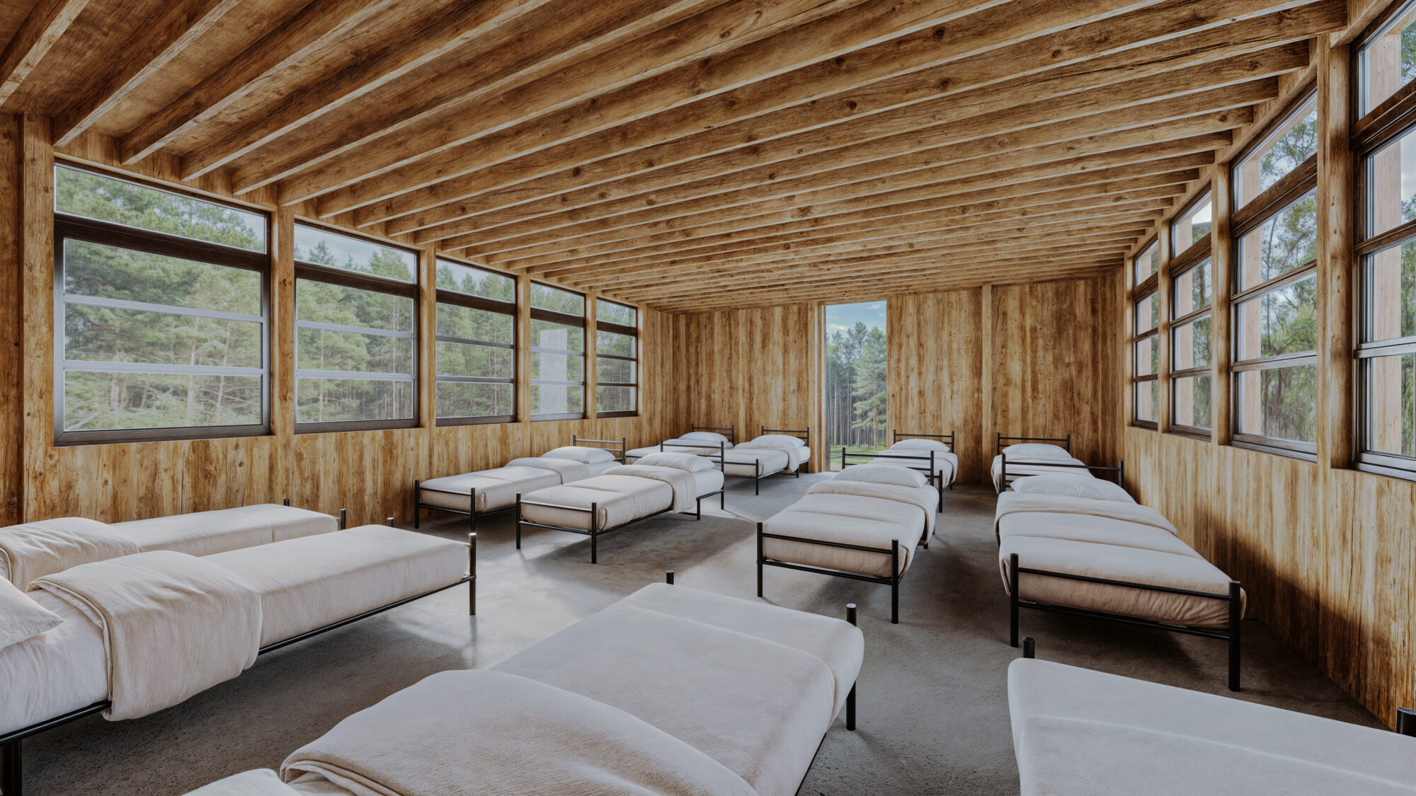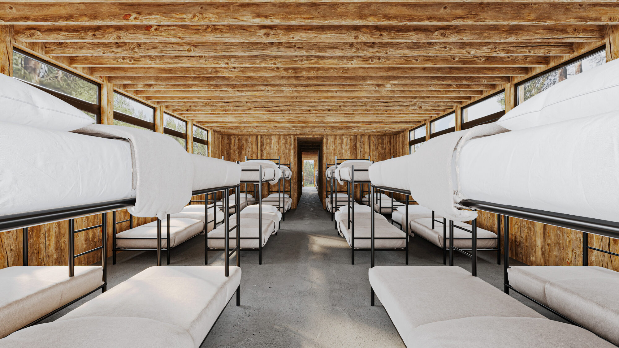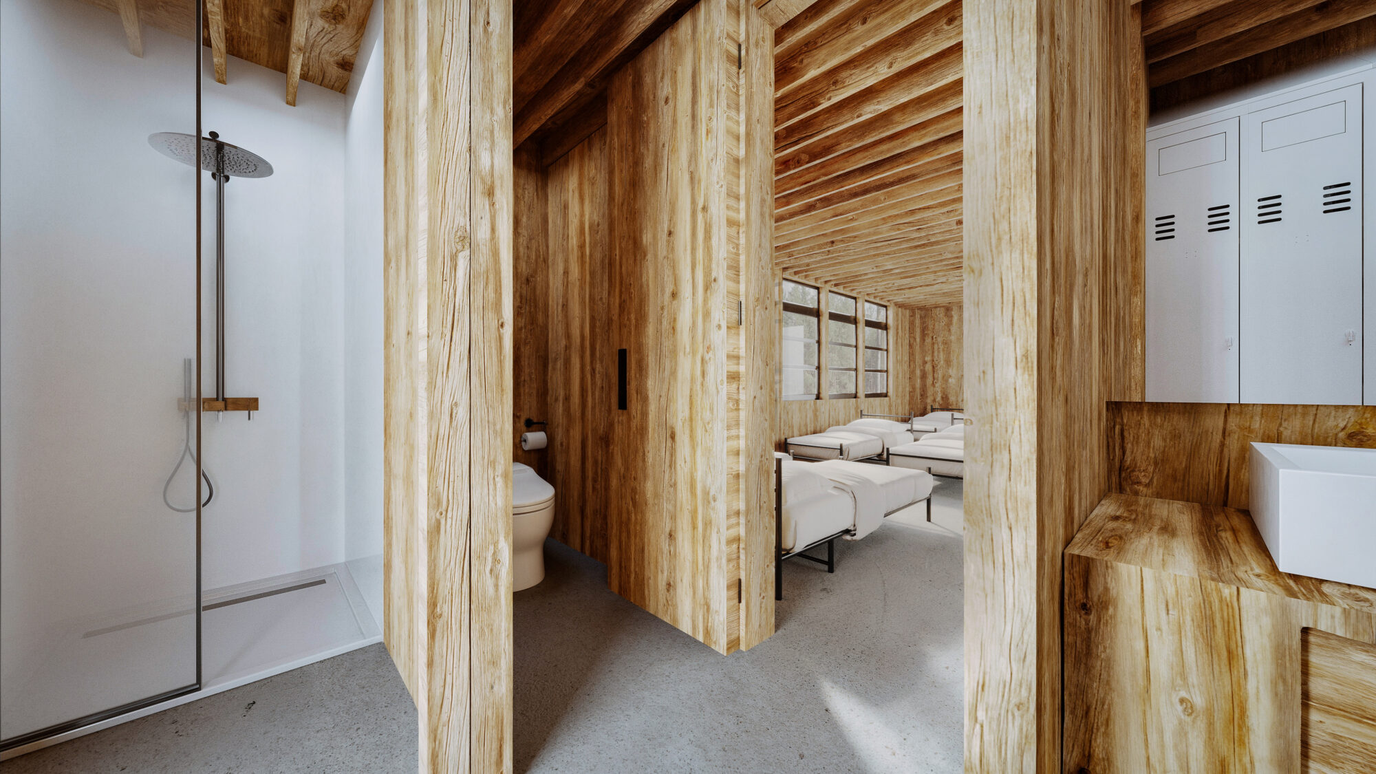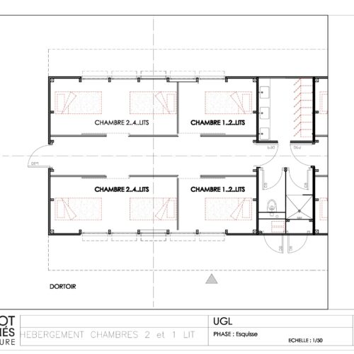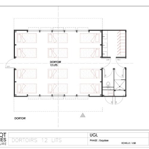 - Le kit d’hébergement-dortoir : de 6 et 12 lits ou des chambres séparées (1, 2 ou 3) avec ses sanitaires et douche intégrés