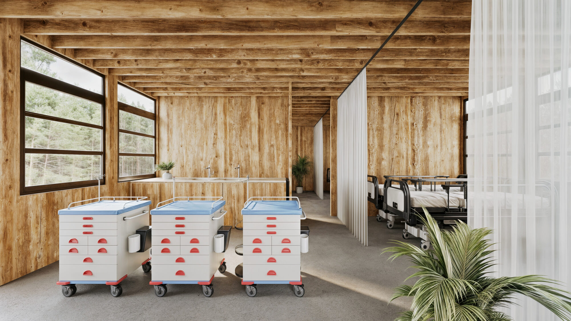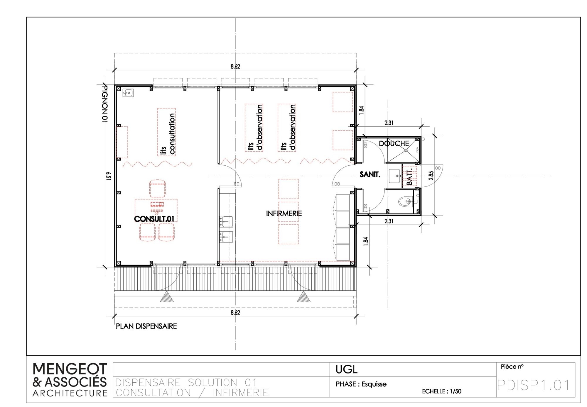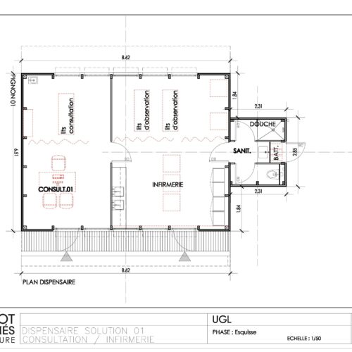 - L’Ensemble de deux kits : l’infirmerie-dispensaire avec ses sanitaires son locale technique et douche incorpore