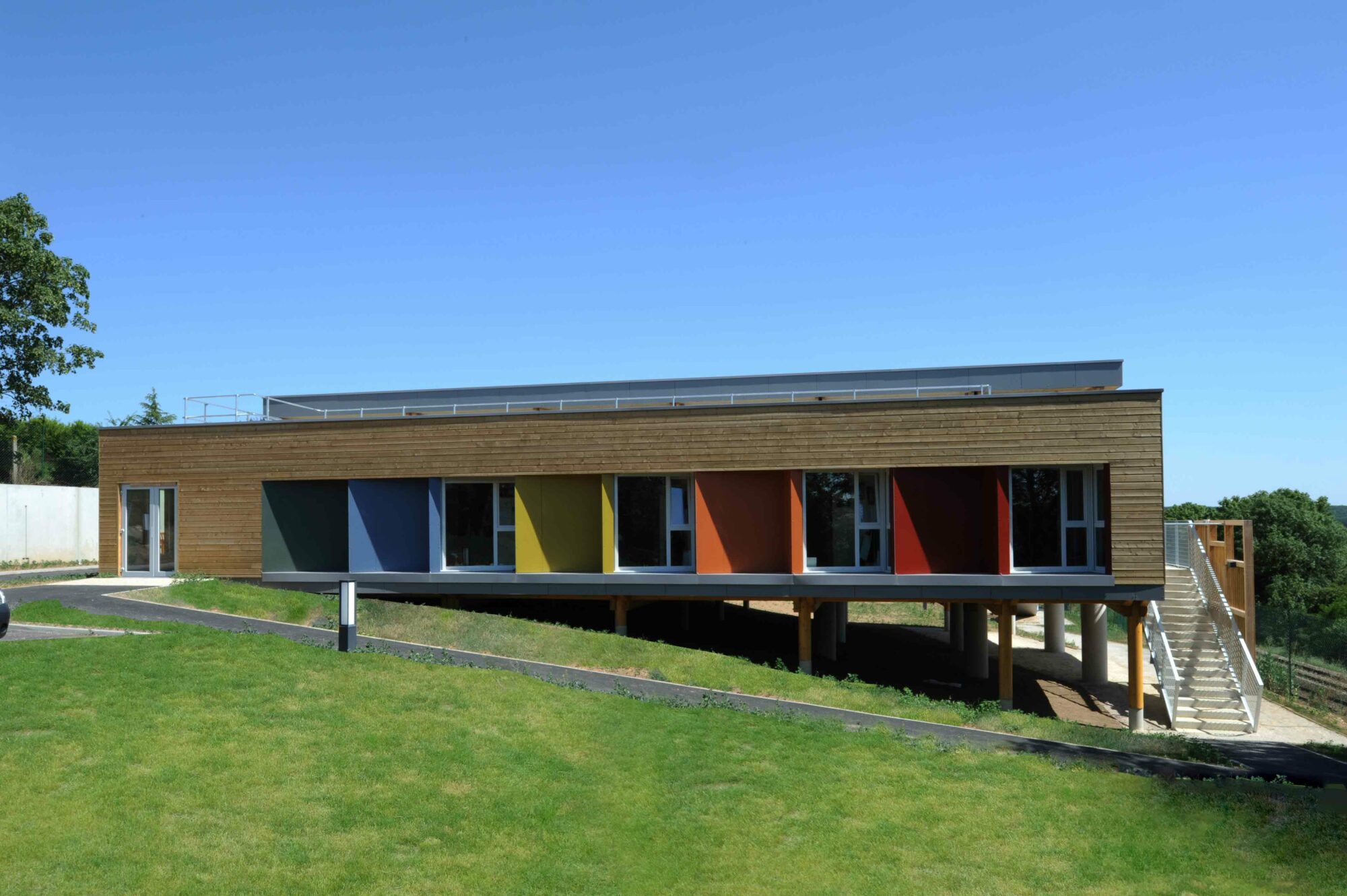 Chaque projet étant unique, Mengeot & Associés privilégie systématiquement la lumière naturelle, considérée comme un élément architectural à part entière qui, selon les orientations, conditionne la conception des façades. La conception bioclimatique recherche des orientations optimales pour profiter des apports solaires, tout en évitant la mise en œuvre de matériel actif coûteux. Nous privilégions également le choix de matériaux locaux, la gestion alternative des eaux pluviales intégrées dans les aménagements paysagers, ainsi que des solutions comme la sur-ventilation nocturne (free cooling) et l’inertie thermique du bâtiment.